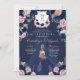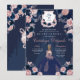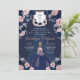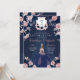 Marinho Azul e Blush Princesa Rosa Castle Quinceanera Convite de Aniversário