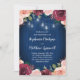 Estes convites florais para casamentos apresentam a cor d'água, a pincelada e as flores de burgundy, a folhagem e as luzes de jarro de pedras sobre um fundo de madeira azul marinho. Personalize-os com o seu próprio texto.