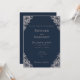 Este elegante convite de casamento apresenta um simples azul marinho e um lugar com um toque de massa leve. Este convite faz parte da nossa linha Margaret. Veja a coleção inteira hoje procurando por Margaret 100 em nosso estúdio.