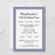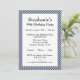 Convites genéricos para todas as ocasiões com um padrão de marinho azul e gingham branco verifica o padrão atrás e enquadra a frente. Elas são adequadas para todas as idades e eventos, incluindo aniversário, aniversário, formatura, aposentadoria, chás e muito mais. Há modelos de texto para facilitar a alteração do texto na frente com o nome do evento, hora, local, informações de rsvp e diversos detalhes.