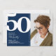 Convites Marinho Blue Photo 50th Festa de aniversário