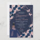 Marinho Blue & Pink Butterfly Princesa Quinceanera Convite Aniversário