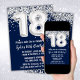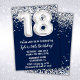 Marinho Blue Silver 18 Convite de aniversário 18 convite de aniversário para um garoto ou garota com escrevendo moderno e balões de folha divertida.