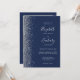 A margem esquerda deste elegante convite de casamento moderno apresenta um design de cintilação de prata. O texto personalizável combina a escrita manual de cinzas prateadas, fontes copperplate e itálico em um fundo azul marinho. Adicione sua foto favorita ao verso, juntamente com texto adicional e um código QR para enviar convidados para o site do seu casamento.