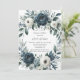 Um casamento sofisticado com um marinho azul-d'água, coroa corada floral, enfeitado com peonias, rosas e verde eucalipto em tons de azul marinho, verde e marfim. A design é aprimorada por uma caixa de cinza prateada, impressa abaixo da coroa, com layout de texto de fonte moderno. O verso do convite continua o tema com arranjo floral correspondente para um olhar coeso e elegante. Perfeito para casais que buscam eterno e papelaria de casamento clássico.