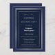 Um elegante convite de aniversário azul surpresa 50º marinho apresentando uma dupla borda prateada.