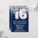 convite de aniversário azul marinho e doce 16 convite de aniversário 16 prateado para um menino ou menina com moderno roteiro escrevendo e balões de folha divertida.