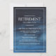 Convite de festas moderno, elegante, azul marinho e branco de aposentadoria. Texto, fonte e texto são completamente personalizáveis com a ferramenta design fácil de usar do Zazzle. Entre em contato conosco para obter ajuda com a personalização ou para solicitar produtos adicionais correspondentes.