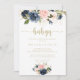Convites Marinho Blush Floral Dourado BabyQ Chá de fraldas