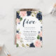 Convites Marinho Blush Flowers 4º 6 Crianças Aniversário