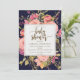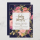 Um belo convite para chás de fraldas de flores/florais/boho, cor-de-rosa, com um texto quadrado de cinza pálida e fundo marinho e verso. Fácil de editar ou excluir os campos de texto disponíveis para personalizar as informações com seus próprios detalhes para um acabamento profissional e personalizado. Muitos itens correspondentes nesta coleção de boho. Por favor, visite meu compro para ver a faixa de cheios. Também estão disponíveis rótulos com rótulos de endereço, entre outros itens, e diferentes variações de fundo e cores de inserção de texto.