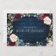 A elegante e moderna crosta geométrica geométrica floral será o meu convite para madrinha de casamento com uma bela burgundy / marsala, cor-de-rosa-pincel, pêssego, rosas de cor-de-água azul-marinho com folhagem correspondente no fundo azul-marinho da madeira rústica e estrutura dourada. Perfeito para um casamento no outono/no meio do verão. Por favor, encontre mais designs e variações na minha loja de "blisswedingpaperie". E sinta-se à vontade para contactar-me para mais personalizações ou itens correspondentes