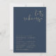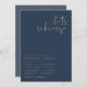 Este convite de janto de ensaio apresenta uma fonte escura e escrita à mão e um design moderno minimalista. Edite facilmente o texto *maioria* para atender às suas necessidades e edite todas as cores de seu gosto. A combinação moderna de cor azul e dourado do marinho faz dela a adição perfeita ao seu casamento moderno, contemporâneo e industrial.