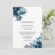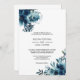 Este convite de casamento floral azul-celestial é perfeito para um casamento na praia. O design apresenta marinhos, azuis e índios lindamente desenhados à mão, bem dispostos em um buquê encantador.