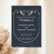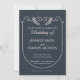 Convide todos os seus amigos e famílias com este Marinho Clássico Elegante e o Cartão de Convite para Casamento Blush. Apresentando uma bela estrutura floral cor-de-rosa pincelada com fundo azul marinho, esta elegante placa personalizável impressionará todos os seus convidados. No verso está uma simples coroa floral onde você pode colocar suas iniciais.