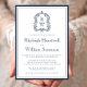 Convites Marinho Clássico, Monograma Azul, Casamento Branco