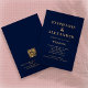 Convites Marinho Clássico Texto Dourado Azul Código QR Casa