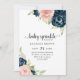 Um convite para bebês, uma menina floral russa, com uma elegante cor d'água pintada flores em azul-claro e azul-marinho, juntamente com os detalhes do seu evento num formato moderno. As rosas cor-de-rosa pinceladas fazem este excelente de convite para uma celebração de primavera e os rosas azuis de marinho o fazem excelente para o outono.
