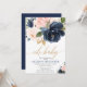 Convites Marinho cor-de-rosa chá de fraldas floral
