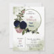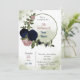 flores rosa romântica e marinho azul e folhas verdes convite de aniversário da coroa botânica