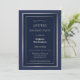 Um convite de festas aniversário de 30 anos marinho azul elegante, surpresa, com uma borda dupla de prata.
