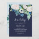 Este marinho clássico de flores brancas "é um menino" é perfeito para um chá de fraldas de outono. O elegante design floral apresenta marfim macio e rosas brancas, peonias e crisântemo com toques de flores azuis e de aquarela azul-piscadela e folhagem verde sobre fundo azul escuro.