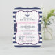 Marinho azul, cor-de-rosa e branco, fofo, elegante tema náutico, tema náutico convite para chá de casamento de nozes azuis marinho, padrão listrado. Possui âncora náutica em um convite elegante, formal e chá de panela.