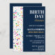 Convite para 42 anos de aniversário do Marinho Azul Confetti janto de aniversário