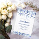 Um moderno, elegante e convite. Um fundo branco decorado com confete azul. Personalize e adicione um nome e detalhes. Texto azul.