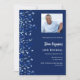 Um moderno, elegante e convite. Um fundo azul marinho decorado com confete azul. Personalize e adicione fotos, um nome e detalhes da festa. Texto branco.