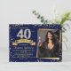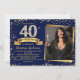 Convites de festas Elegantes de aniversário de 40 anos com um fundo azul de marinho na moda, uma foto da Bday Girl, brilho brilhante dourado e um modelo de texto moderno que é fácil de personalizar. Itens correspondentes disponíveis.