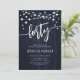 Convite de festas aniversário de 40 anos. Design russo com padrão de madeira de marinho. Cartão de convite clássico com luzes de fada e fonte branca de script. Perfeito para uma comemoração de na moda 40 dias. Personalize com seus próprios detalhes. Pode ser personalizado para qualquer idade! Impressos convites Zazzle ou modelo de impressão digital instantânea para download.