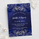 Um fundo azul marinho, decorado com rosas azuis, flores. A cor azul é irregular. Personalize e adicione um nome e detalhes da parte. Traseira: marinho azul e falso prata brilha.