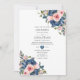 Tendy blush cor-de-rosa e marinho azul convite de casamento floral personalizável para suas especificações de evento.