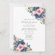 Tendy blush cor-de-rosa e marinho azul convite de casamento floral personalizável para suas especificações de evento.