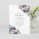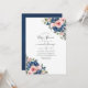 O chá de fraldas floral cor-de-rosa e azul-marinho da tendência convida a personalizá-lo para suas especificações de evento.