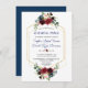 Convites Marinho de ensaio Floral Dourado Hexágono Janto de