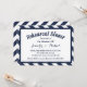 Adicione diversão ao seu janto de ensaio de casamento com listras! Esses encantadores convites para janto de ensaio apresentam um padrão de riscas náuticas, azul e branco, em marinho, destacando suas informações de janto de ensaio em uma série de fontes escritas à mão, escritas e digitadas. Você pode alterar o estilo e as cores da fonte de acordo com as suas necessidades. A parte de trás do convite apresenta um padrão de faixa marinho azul e branco correspondente. Outros produtos de papelaria para casamentos e festas que você pode gostar... Casamentos, listras, azul e branco