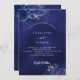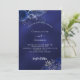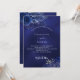 Um fundo azul marinho, decorado com flores azuis, rosas. A cor azul é irregular. Personalize e adicione seus nomes e detalhes. Adicione a url do site do casamento para detalhes do casamento e RSVP.