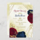 Belo chá de panela com marinho azul escuro e flores vermelhas e folhas de ouro. É adequado para convites para noivas e chás de fraldas. PARA MAIS PRODUTOS CORRESPONDENTES, clique na coleção acima ou entre em contato comigo