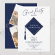 Comemore ao estilo com esses designs de cartão de convite para a graduação modernos em azul marinho para a classe de 2022. Adicione suas informações personalizadas na frente e duas fotos incríveis na parte traseira do cartão. Excelente para convites para celebração de segundos graus, universidades e/ou universidades.