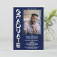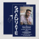 Convide seus amigos e entes queridos para a sua festa de formatura com este convite azul personalizado de marinho de foto de texto branco moderno.