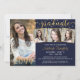 Convite à festa de formatura marinho azul e dourado moderno editado, com 4 fotos e uma tipografia elegante de script de caligrafia em ouro, destacada com o confete em ouro contra a sua escolha de cor de fundo — mude para uma cor da escola ou coordene a cor da foto para aprimorar suas fotos. ASSISTÊNCIA: Para obter ajuda sobre modificação/personalização do design, transferência do design para outro produto ou sobre como coordenar itens, entre em contato com o designer ANTES DE PEDIR, via Chat Zazzle ou makeitaboutyoustore@gmail.com.