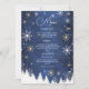 Marinho de inverno com floco de neve moderno e Dourado convite para casamento.