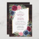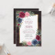 Convites de casamento florais, azuis e arrojados, com marinho rústico personalizado, com um belo quadro botânico de flores de burgundy, azul e escamoteadas e verde em madeira de celeiro. Personalize facilmente estes elegantes cartões de casamento florais com os seus próprios detalhes de casamento. Para itens correspondentes, entre em contato conosco através do bate-papo Zazzle disponível na página do produto.