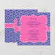 Padrão de fêmur azul marinho monograma com sotaque rosa quente. Convites de casamento.