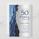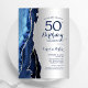 Marinho azul e prata agate 50º convite de aniversário. Elegante design moderno com cor azul-real de água agate marble geode fundo, faux glitter prata e script de tipografia. Trendy convida o cartão perfeito para uma comemoração de dia das mulheres na moda. Impressos convites Zazzle ou modelo de impressão digital instantânea para download.