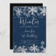 Modelo Elegante do primeiro aniversario de inverno com Flocos de neve prateados Maravilha de inverno. Imprima os seus amigos com este design de convite sofisticado e moderno.
