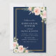 Um adorável design moderno com uma elegante estrutura de ouro e lindas flores rosadas cor-de-água. Personalize o texto e as cores neste modelo de convite de janto de ensaio.