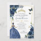 Convites Marinho de Quinceañera Borboletas Florais Azuis e